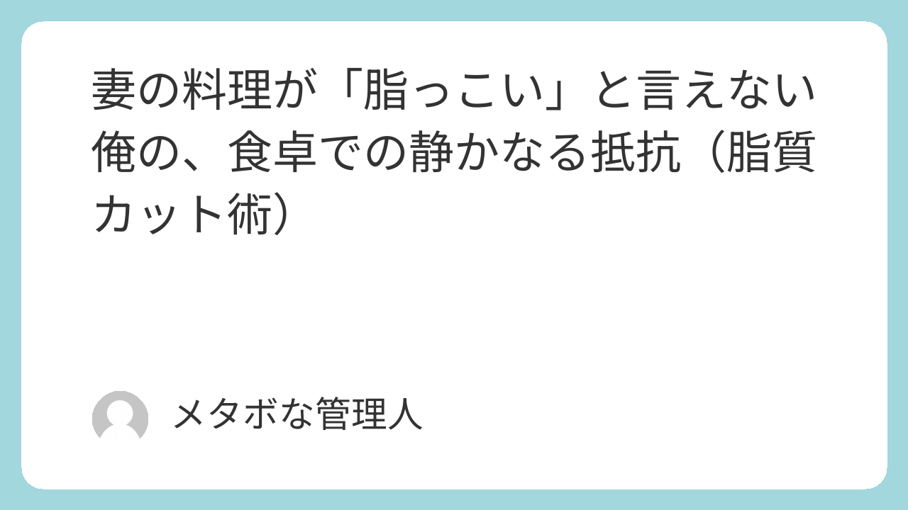 妻の料理が「脂っこい」と言えない俺の、食卓での静かなる抵抗(脂質カット術)